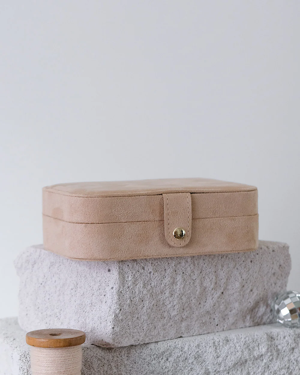 Boîte à bijoux de voyage Brigitte en velours – Beige