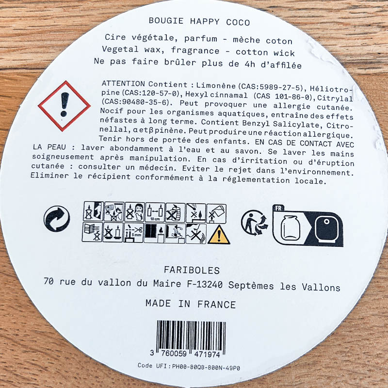 Hello, je suis la bougie “Happy Coco” de la marque Fariboles, je suis là pour vous offrir une expérience olfactive tout en simplicité et en douceur. Avec mes 140g de pure délice, je vais transformer votre intérieur en un havre de paix. Je suis la reine des ambiances zen, avec un parfum délicat qui apaise l’esprit et éveille les sens.