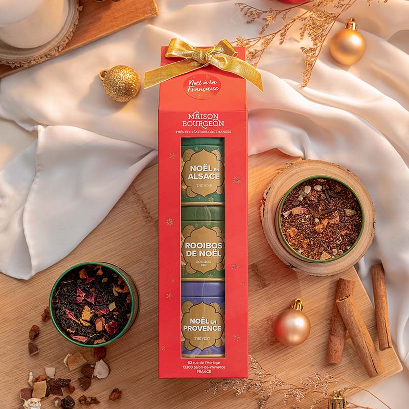 Recette : Thé noir Noël en Alsace (25g), Thé vert Noël en Provence (30g), Rooïbos de Noël bio (35g)