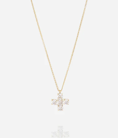 Sautoir sur lequel est attaché un pendentif en forme de croix serti de zirconiums.