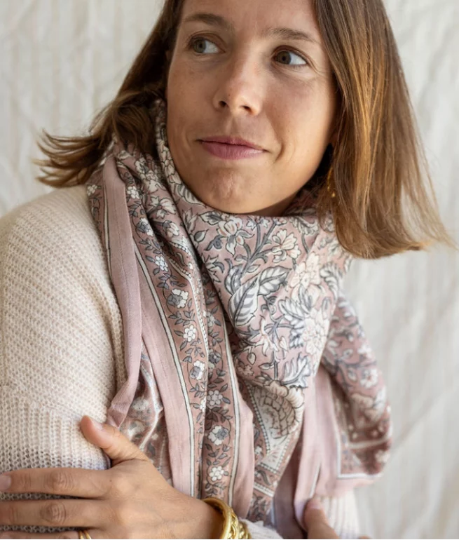 Je suis imprimé à la main selon la technique d’impression artisanale du Blockprint – un procédé qui consiste à imprimer le tissu grâce à des blocs de bois gravés.