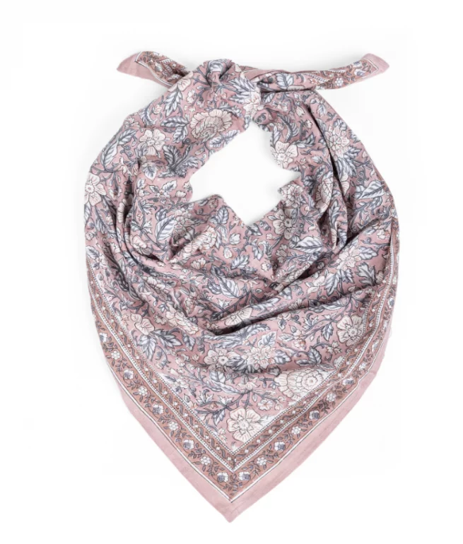 Je suis un carré coloré et imprimé à la main sur un tissu doux et léger, qui enveloppera votre cou pour un style boho-chic irrésistible !