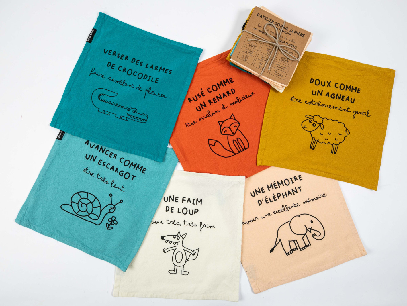 Bonjour, je suis le Lot 6 serviettes – Les Animaux font leur Numéro de la marque Sophie Janière.