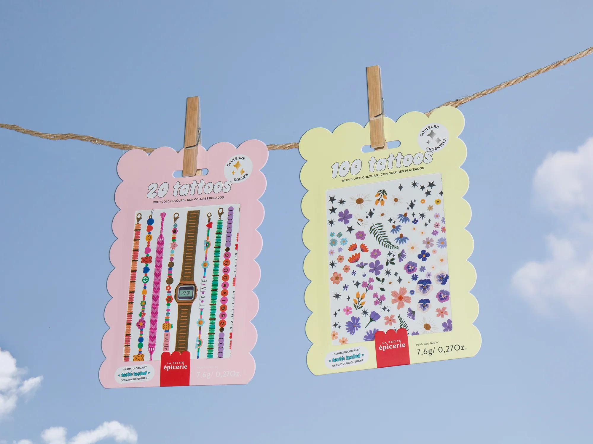 Hello, je suis la Pochette de Tattoos – Bracelets de la marque La Petite Epicerie.