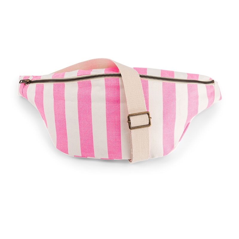 Signé : le Sac Banane – Rayures Ecru Neon Pink