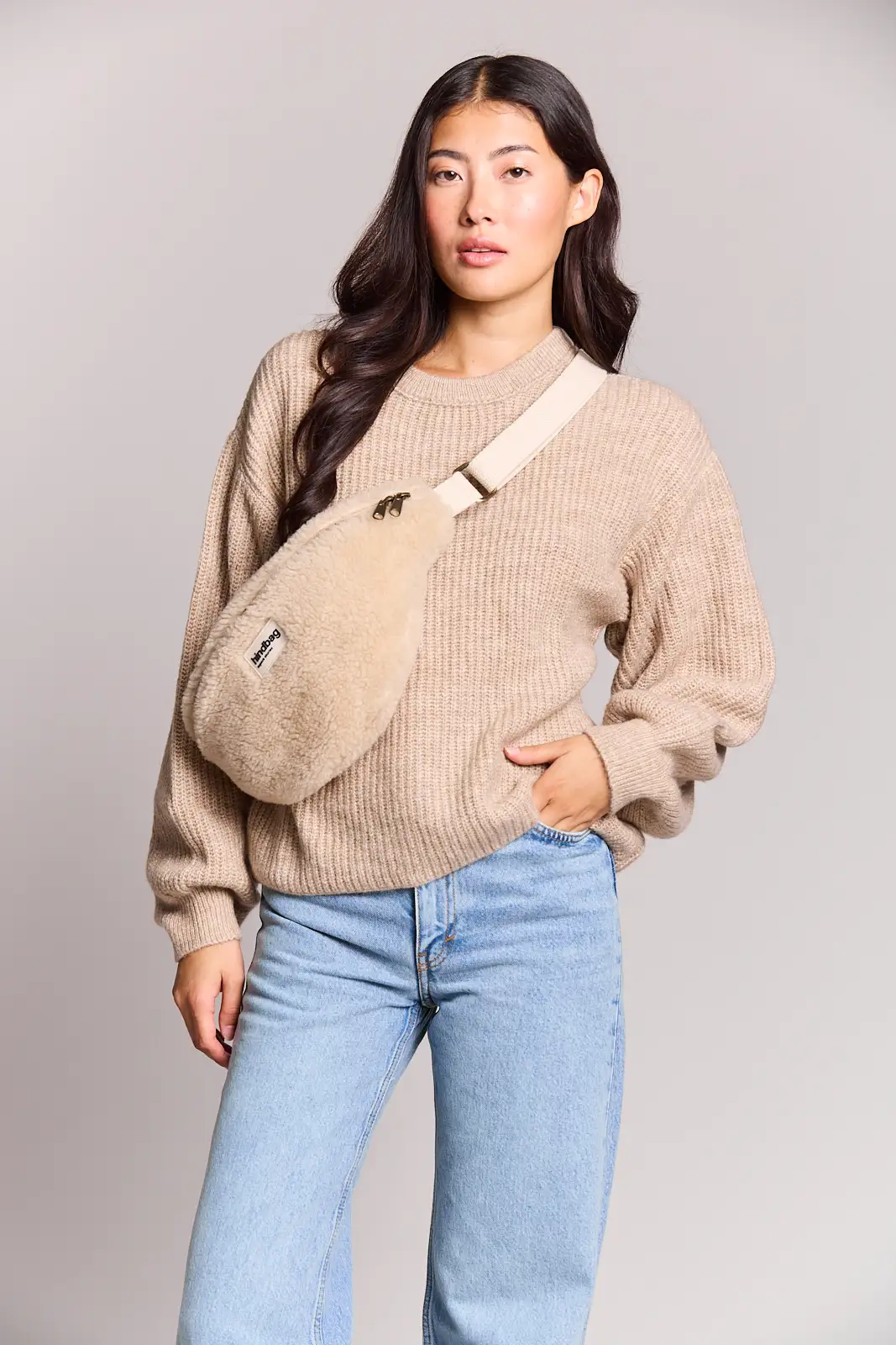 Hello, je suis le Sac banane Sasha Teddy beige de la marque Hindbag.