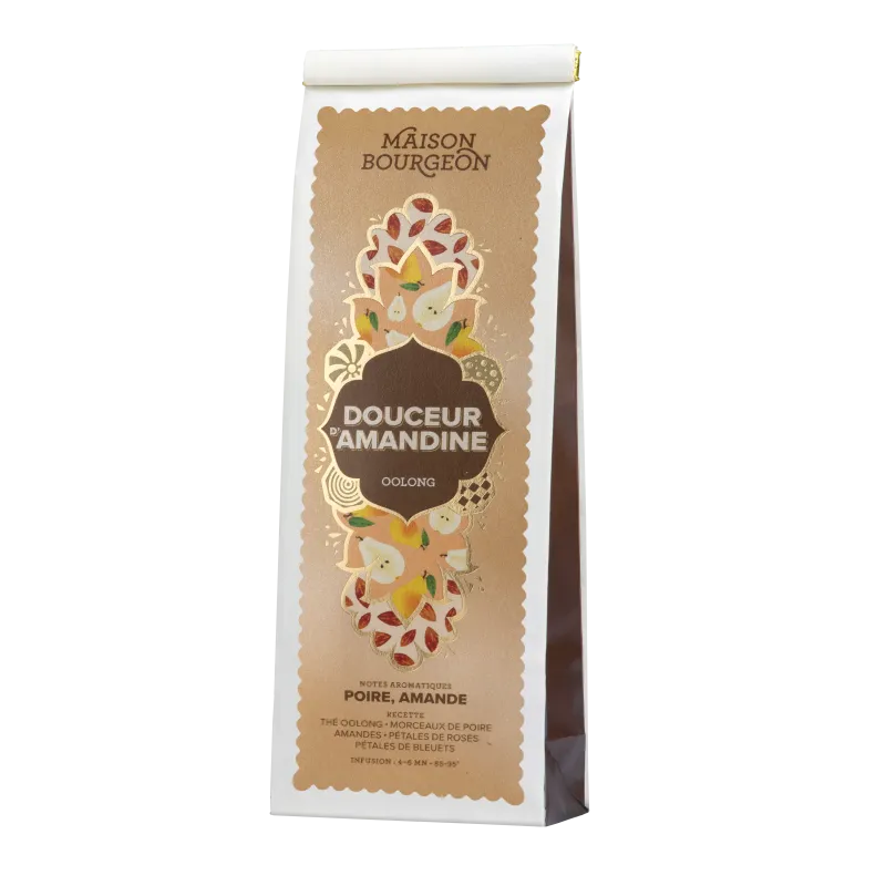 Je suis un thé Oolong raffiné aux notes douces et sucrées de poire et d’amande. Mon mélange délicat est une invitation à la détente et au plaisir.