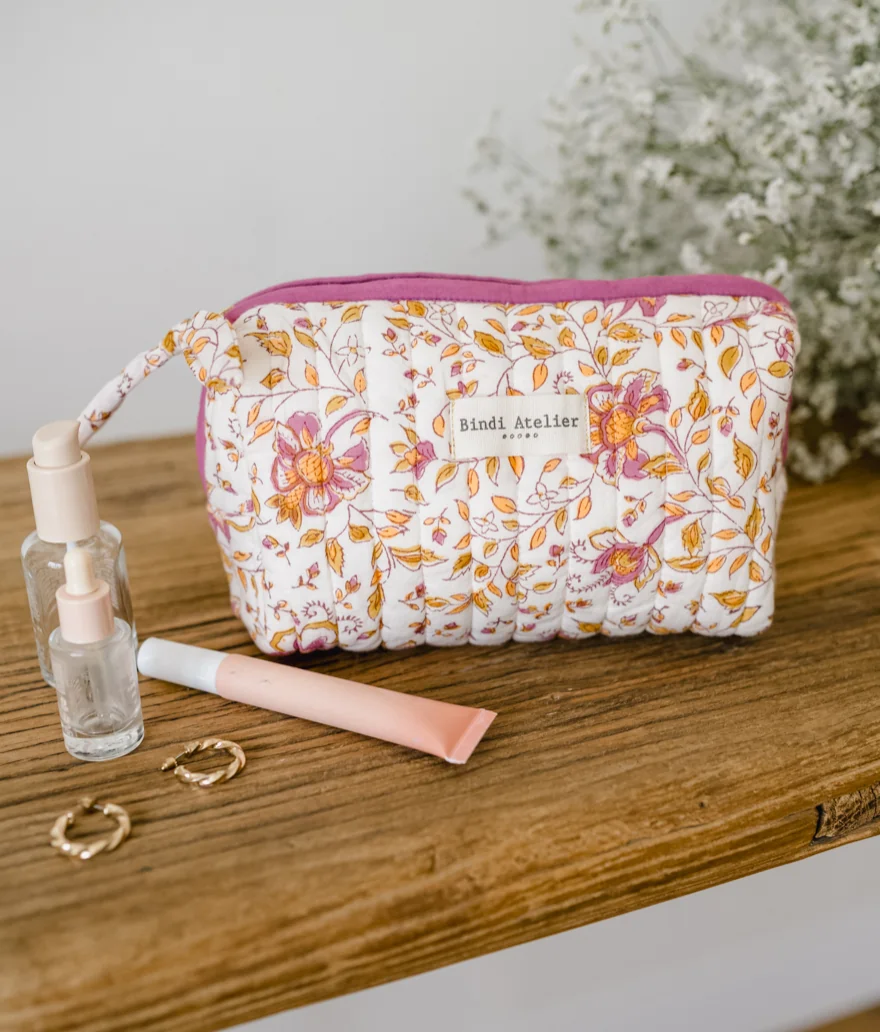 Hello, je suis la Trousse de Maquillage – Folk Story Pétale de la marque Bindi Atelier.