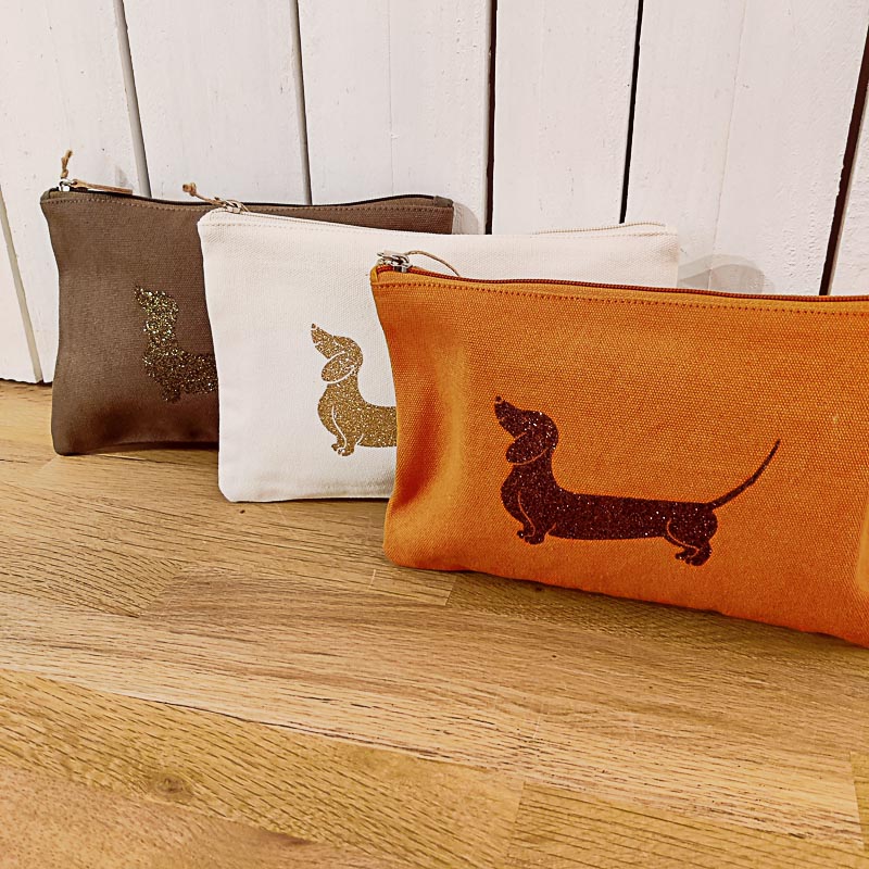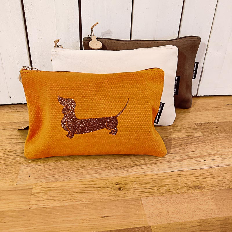 Hello, je suis la Trousse plate – Teckel de la marque Sophie Janière.